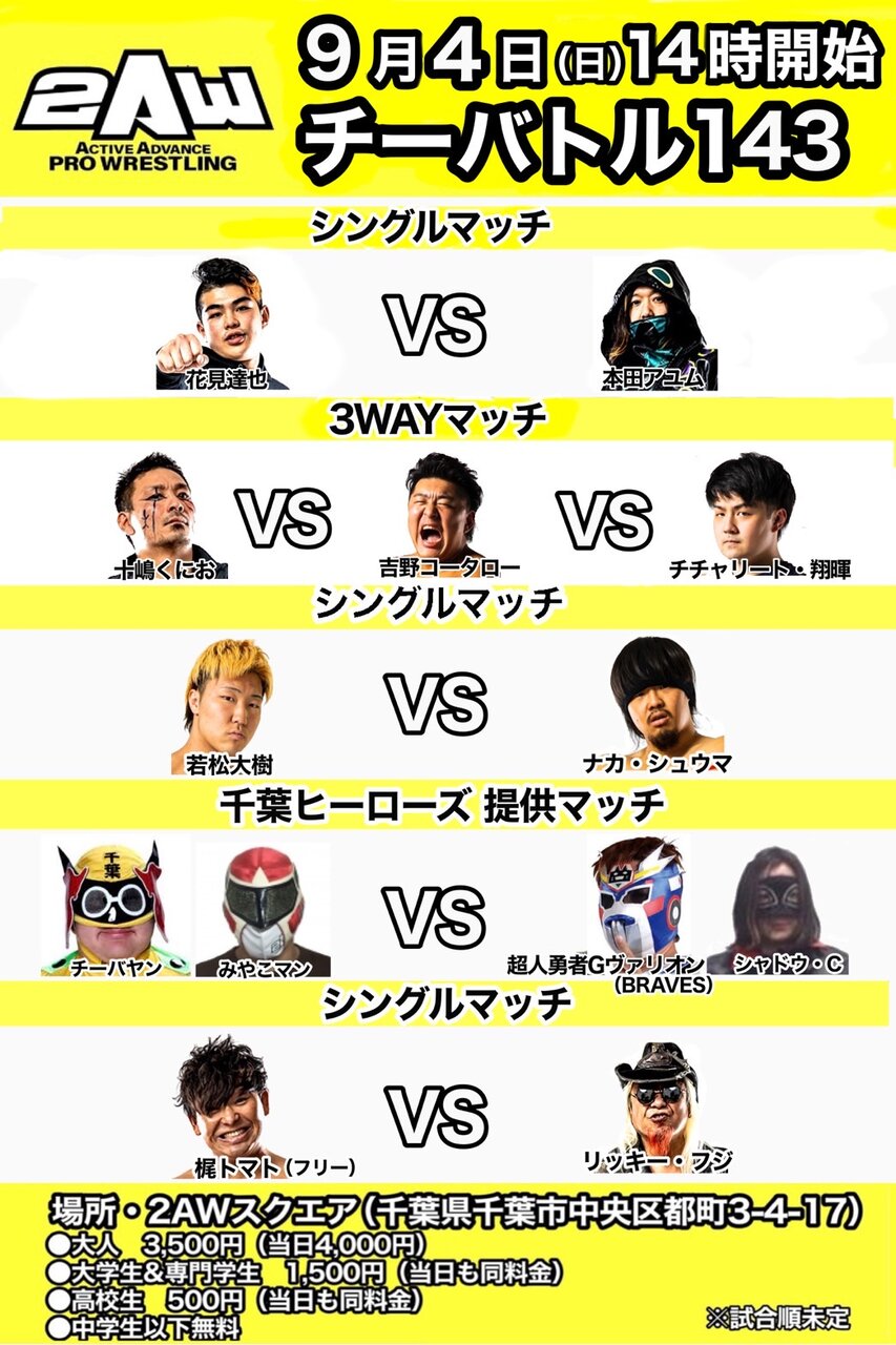 2022年9月4日(日)チーバトル143[千葉・2AWスクエア]にて出場を予定しておりました弊社所属選手 条柴拓真は発熱症状が見られるため大事をとり、今大会を欠場することとなりました。