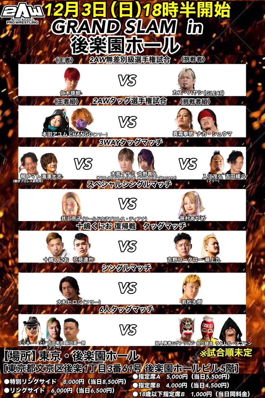 ◎2023年12月3日(日) GRAND SLAM in 後楽園ホール大会 生中継!※18:25開演