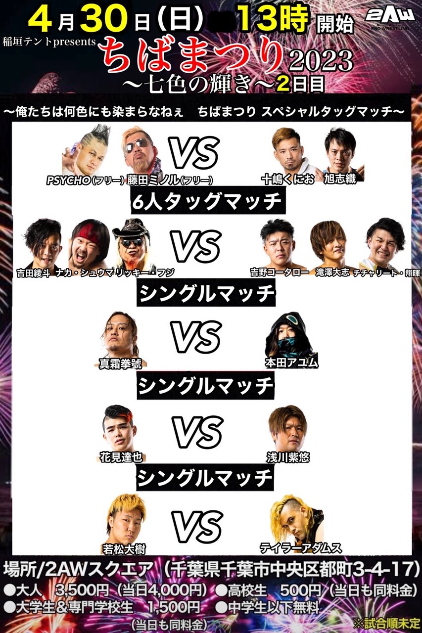 ◎2023年5月13日(土)観戦無料イベント『第4回 2AW 千葉コミュニティプロレス in 穴川コミュニティセンター』[千葉・穴川コミュニティセンター]※14:00