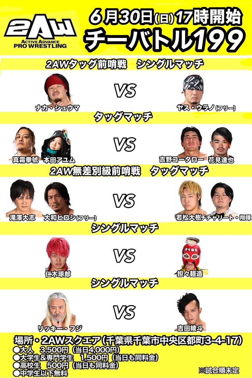 ◎2024年7月21日(日)チーバトル200~まだまだ2AWの闘いは終わらない~200回記念大会[千葉・2AWスクエア]※14:00開始
