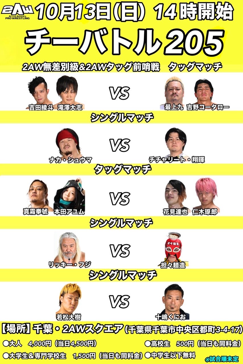 【内容】2AWグッズ 販売(オフィシャル・選手グッズ・ポートレート等)、大会チケット販売(10月27日TKPガーデンシティ千葉大会、11月チーバトルほか)