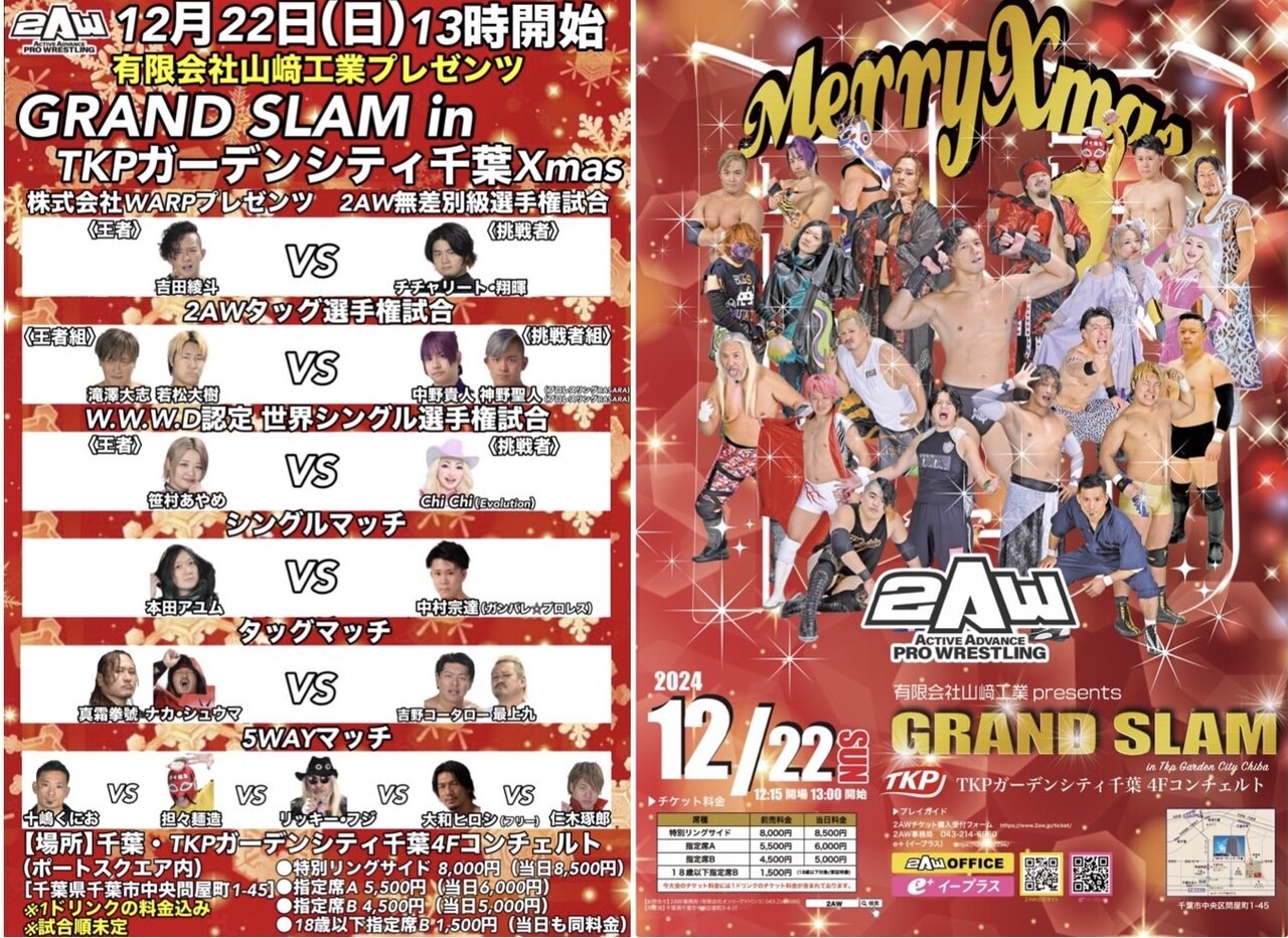 あす、2024年12月22日(日)13時開始『有限会社 山﨑工業プレゼンツ GRAND SLAM in TKPガーデンシティ千葉 Xmas』[千葉・TKPガーデンシティ千葉 4F コンチェルト]の大会直前情報をお知らせ致します。