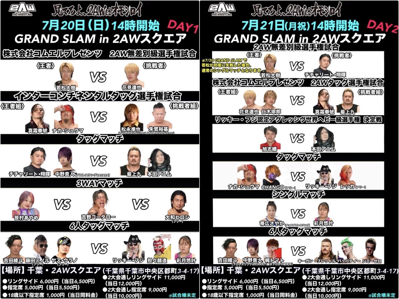 ※2大会通しチケットは7月20日『GRAND SLAM in 2AWスクエア DAY1』もご観戦いただけます。
