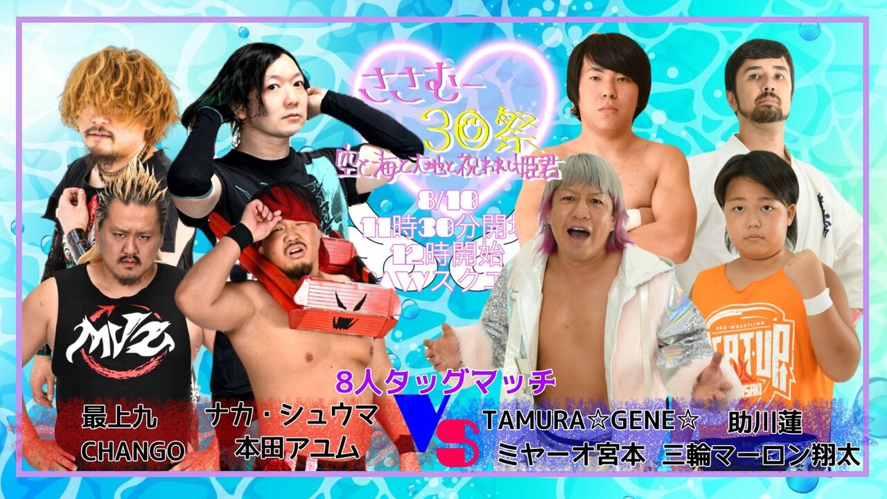 ナカ・シュウマ&本田アユム&CHANGO&最上九 vs TAMURA☆GENE☆&ミヤーオ宮本&助川蓮&三輪マーロン翔太