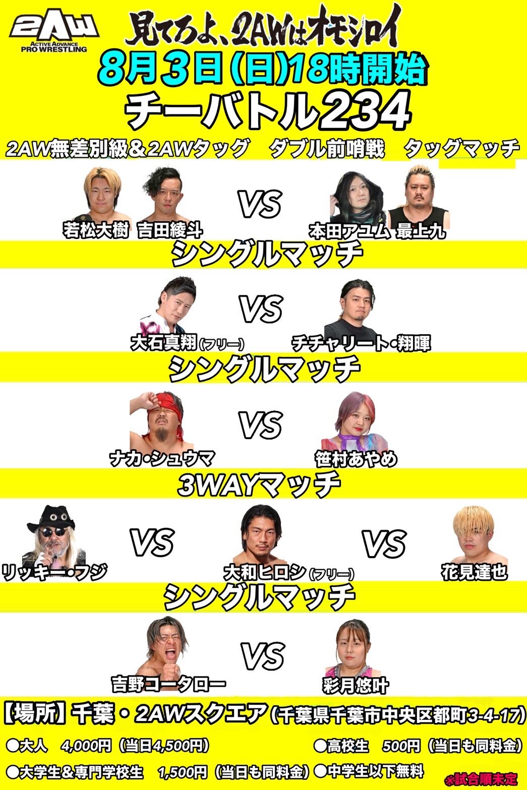 2025年8月3日(日)18時開始『チーバトル234』[千葉・2AWスクエア]の全カードが決定しましたので、お知らせ致します。