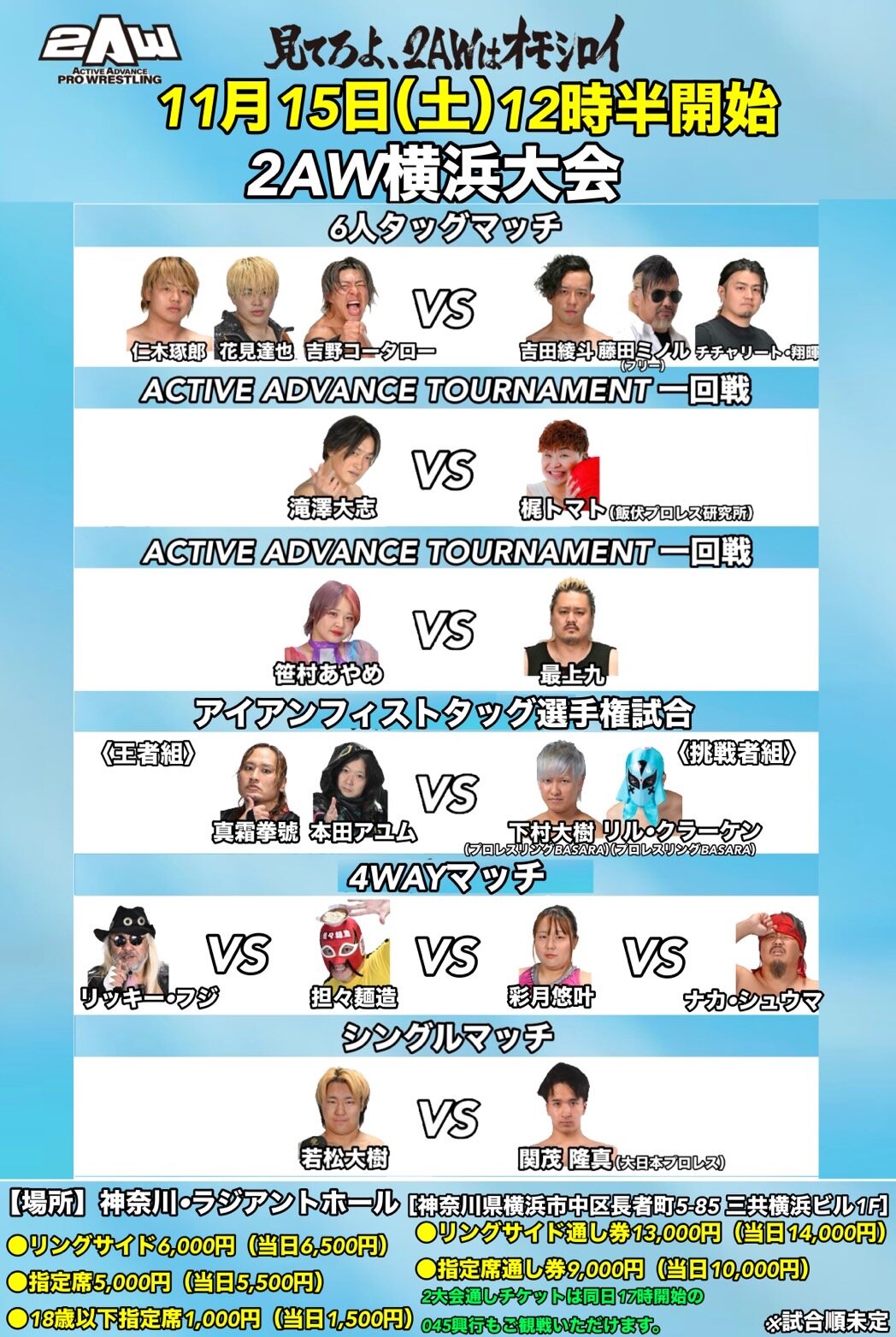 また今大会では、2AW最大のトーナメント ACTIVE ADVANCE TOURNAMENT 一回戦も開催されます。