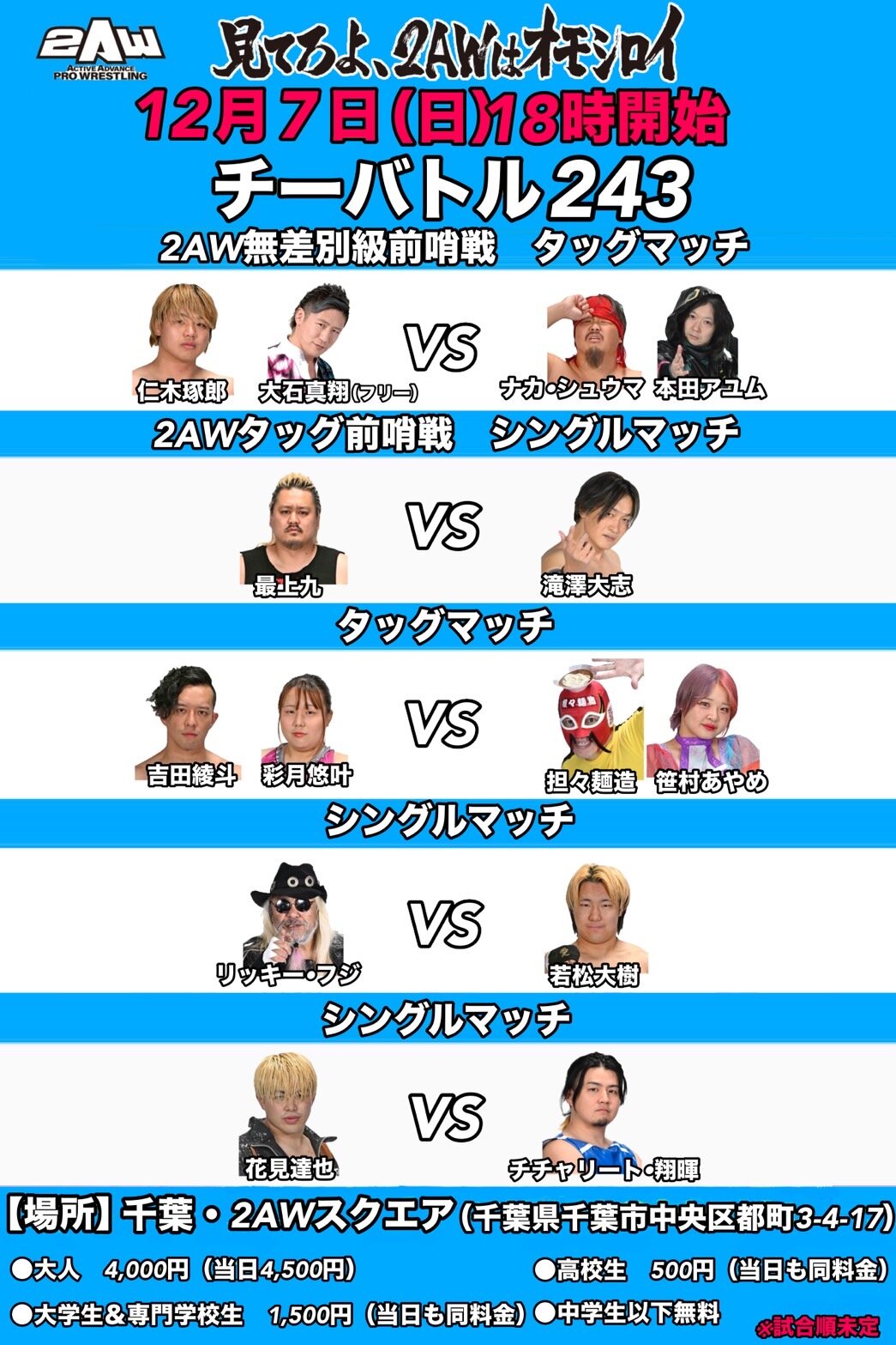 《12月7日(日)18時開始『チーバトル243』》
