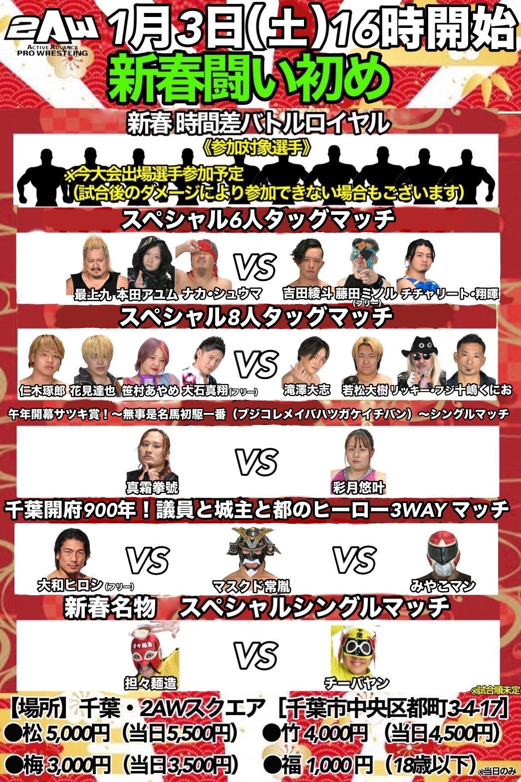 あす、2026年1月3日(土)16時開始『2AW 新春闘い初め』[千葉・2AWスクエア]の大会直前情報をお知らせ致します。