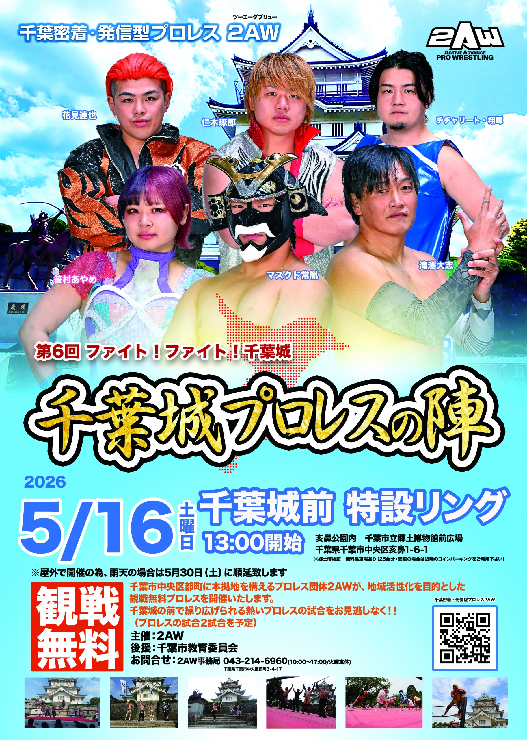| 場所 | 千葉・千葉城前 特設リング(亥鼻公園内・千葉市立郷土博物館前広場/千葉県千葉市中央区亥鼻1-6-1) ※駐車場:乗用車25台分の無料駐車場あり(満車の場合は近隣のコインパーキングをご利用ください) |